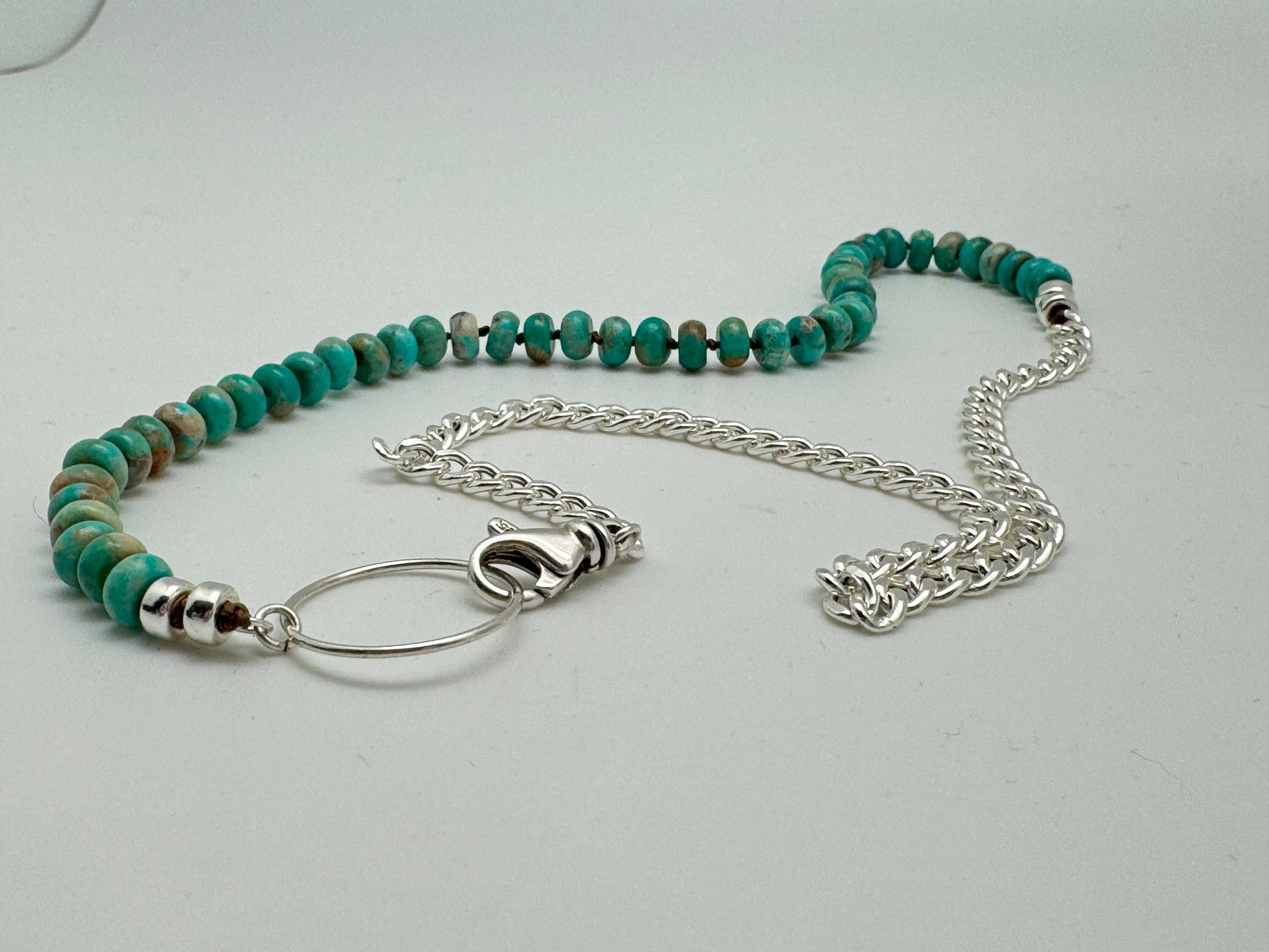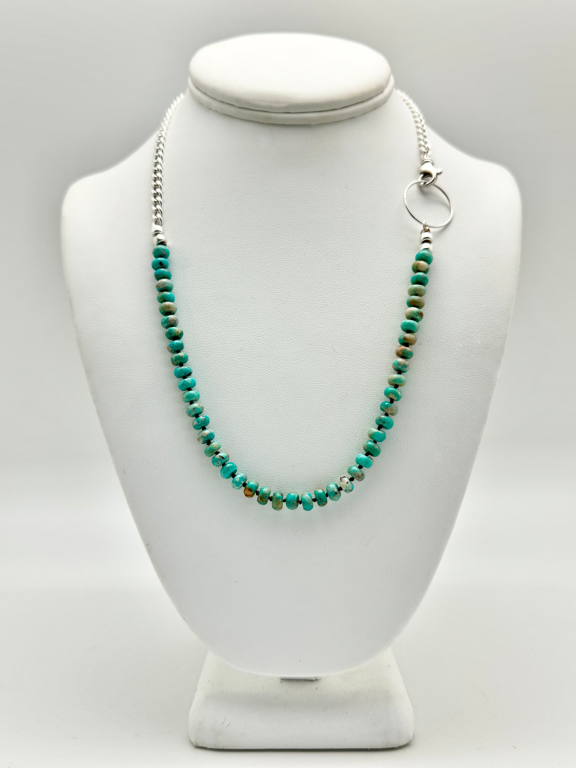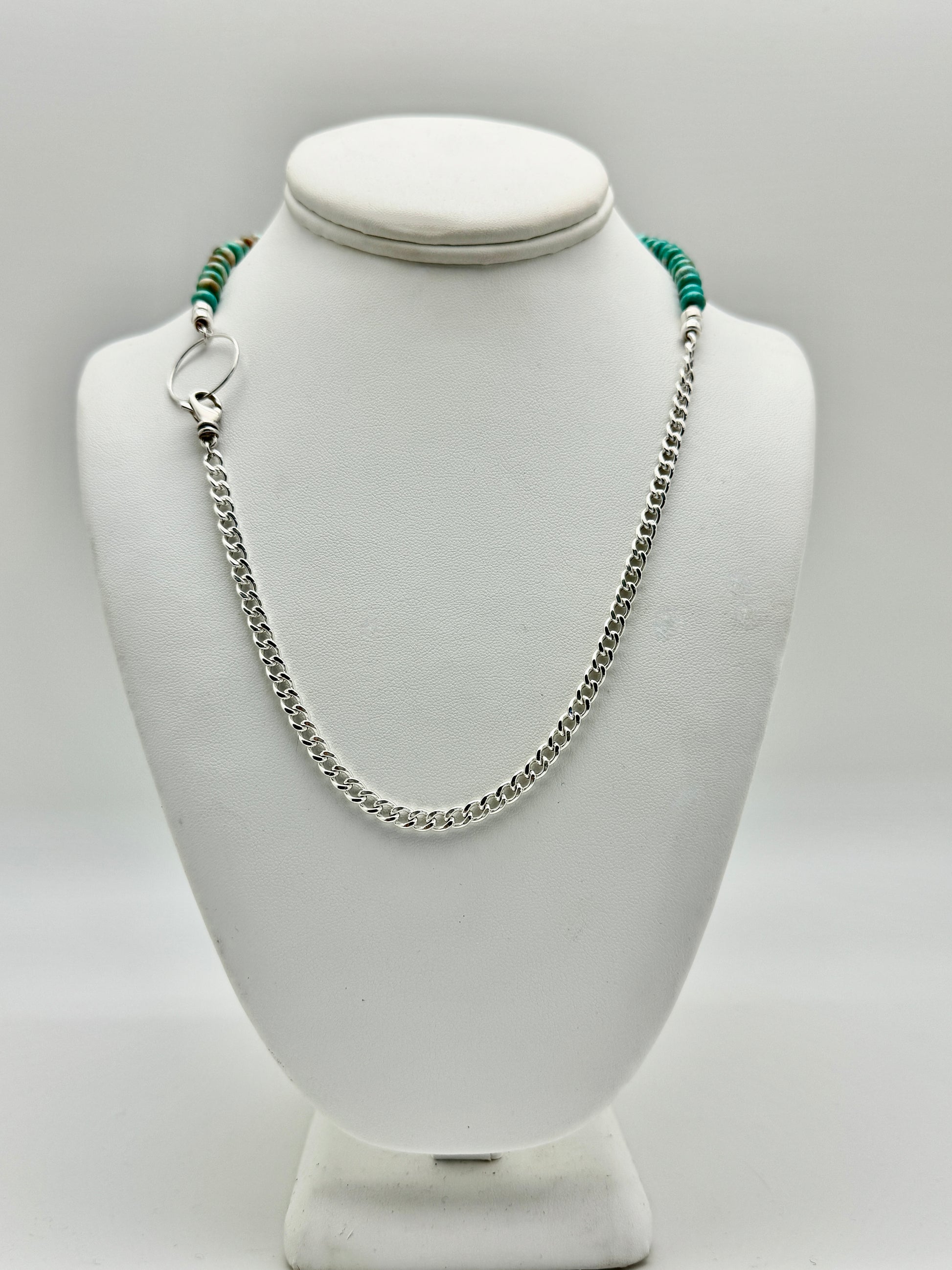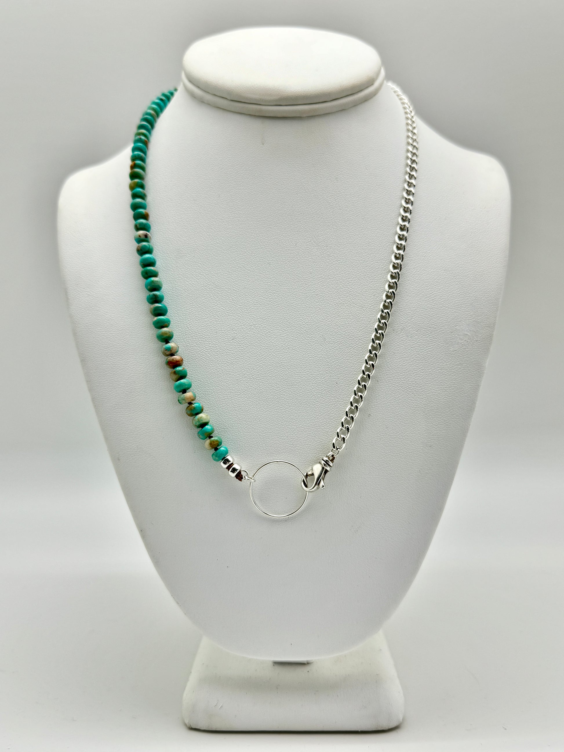 Crafted with passion and precision in the heart of Tucson, AZ, this one-of-a-kind piece features genuine Kingman turquoise, renowned for its vibrant sky-blue color and unique variations. The Yin Yang design represents harmony and balance, while the chunky silver chain adds a bold touch of connection to your look.