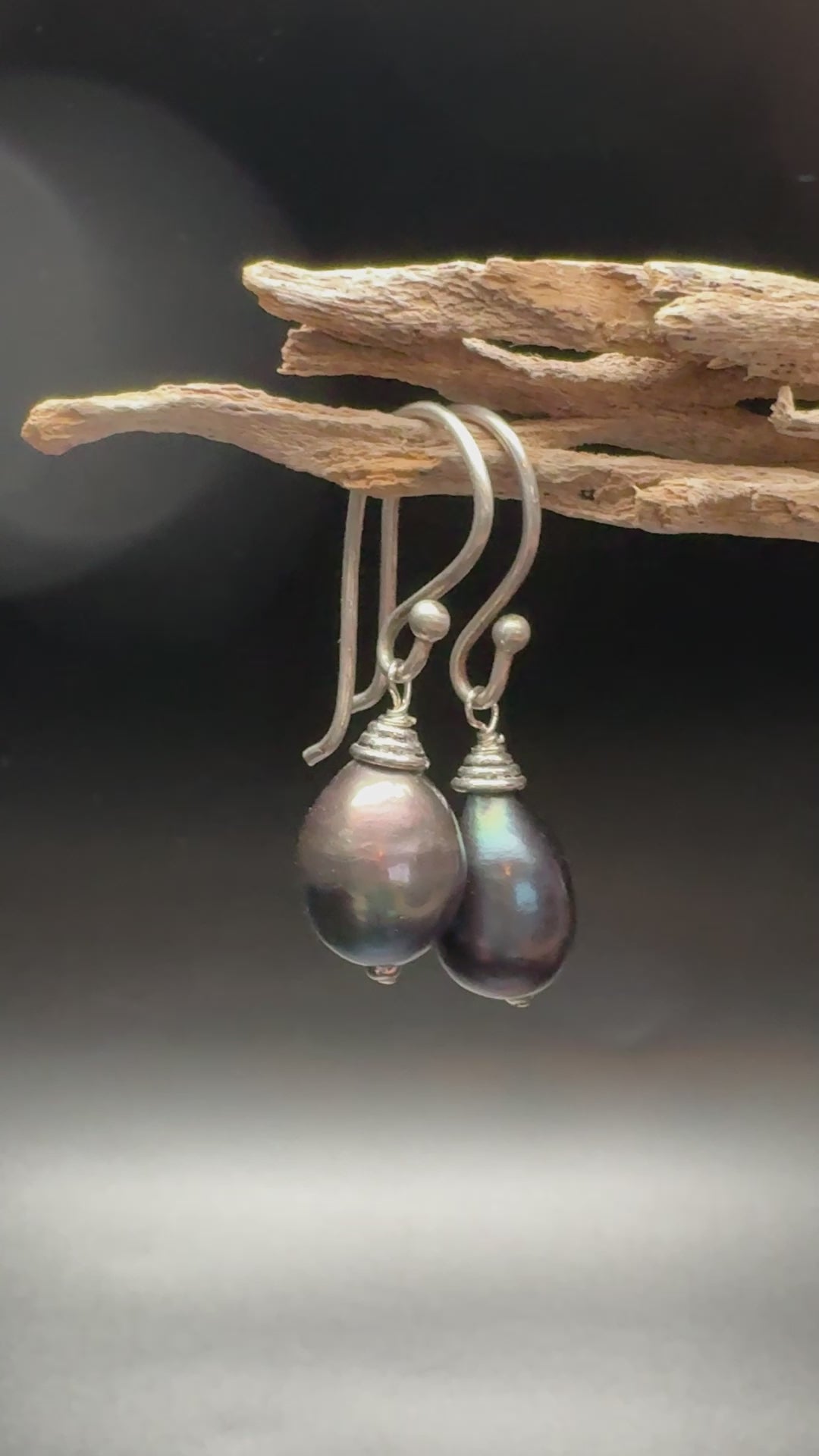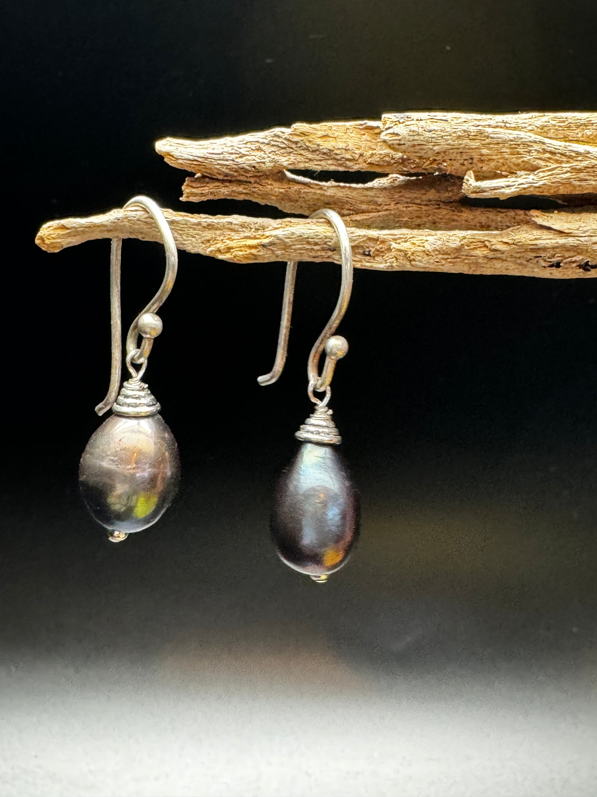 Iridescent Freshwater Pearl Earrings with Handmade Sterling Silver Accents