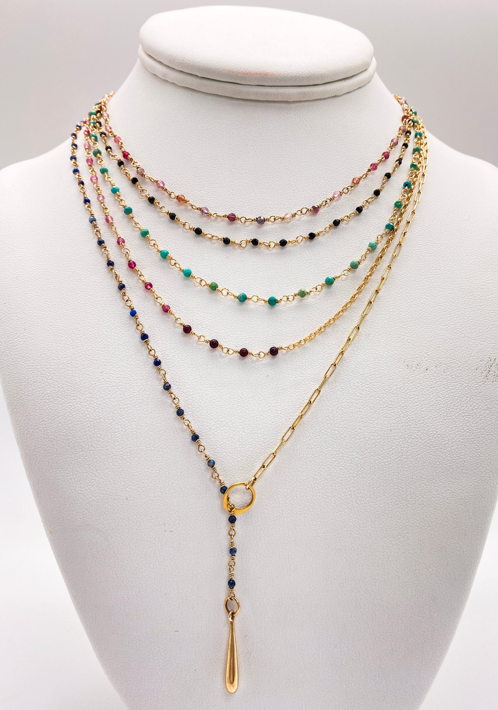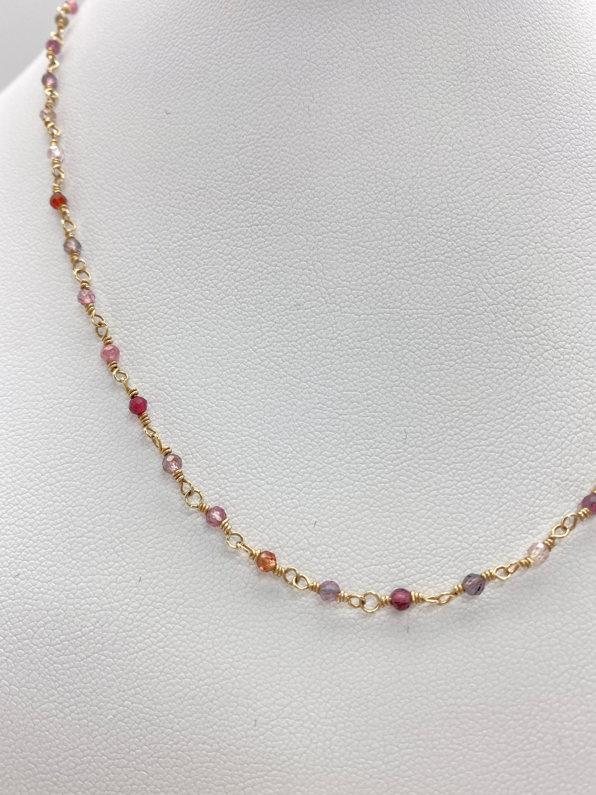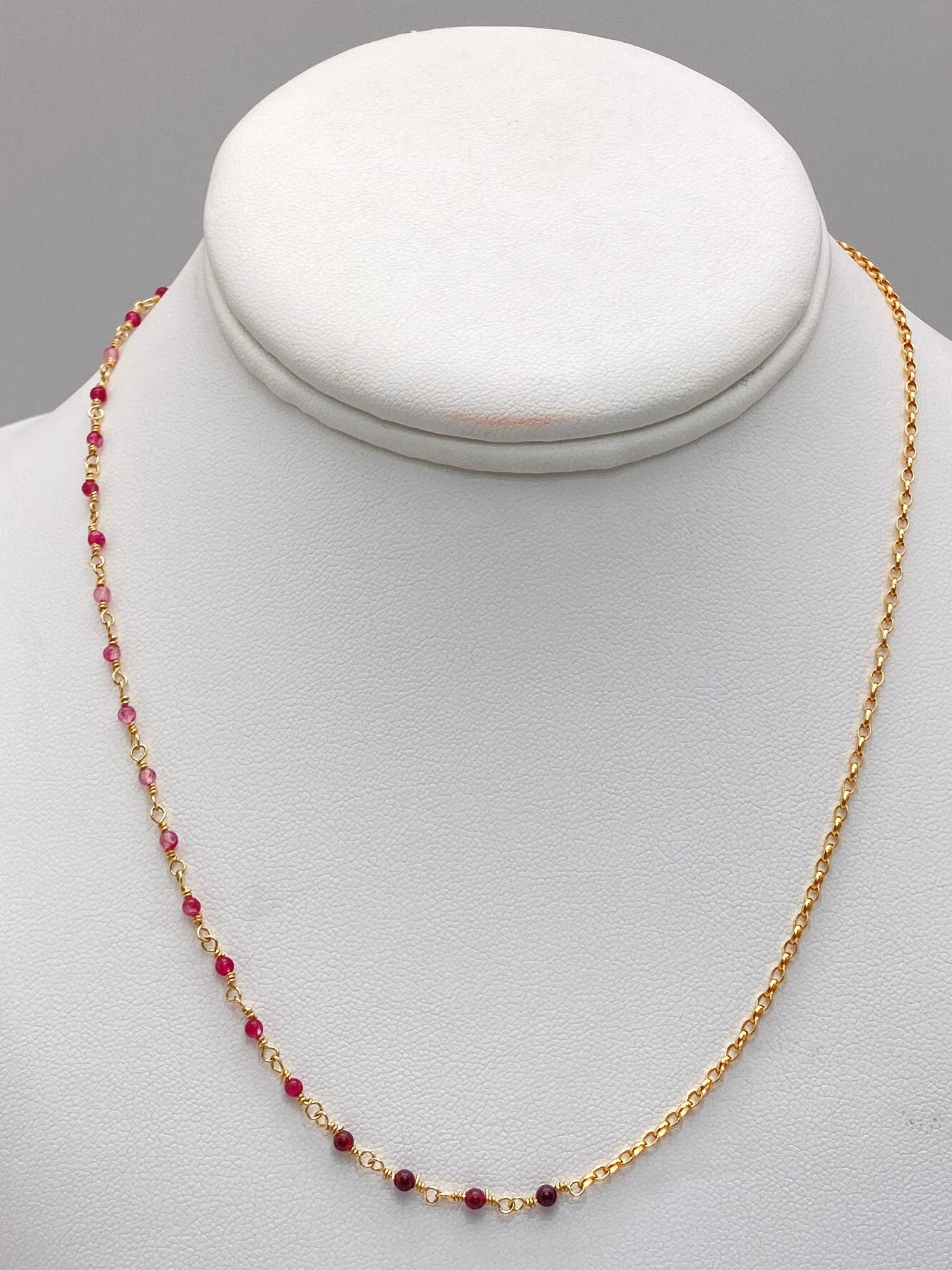 Garnet in shades of pink and deep red, join together with gold chain in this Yin Yang Necklace which symbolizes how opposite or contrary forces can work in harmony to compliment each other. There can be no positive without a negative, No light without dark. No good without bad. Wear it as a reminder that all is well and finding balance is key to mental and spiritual health.