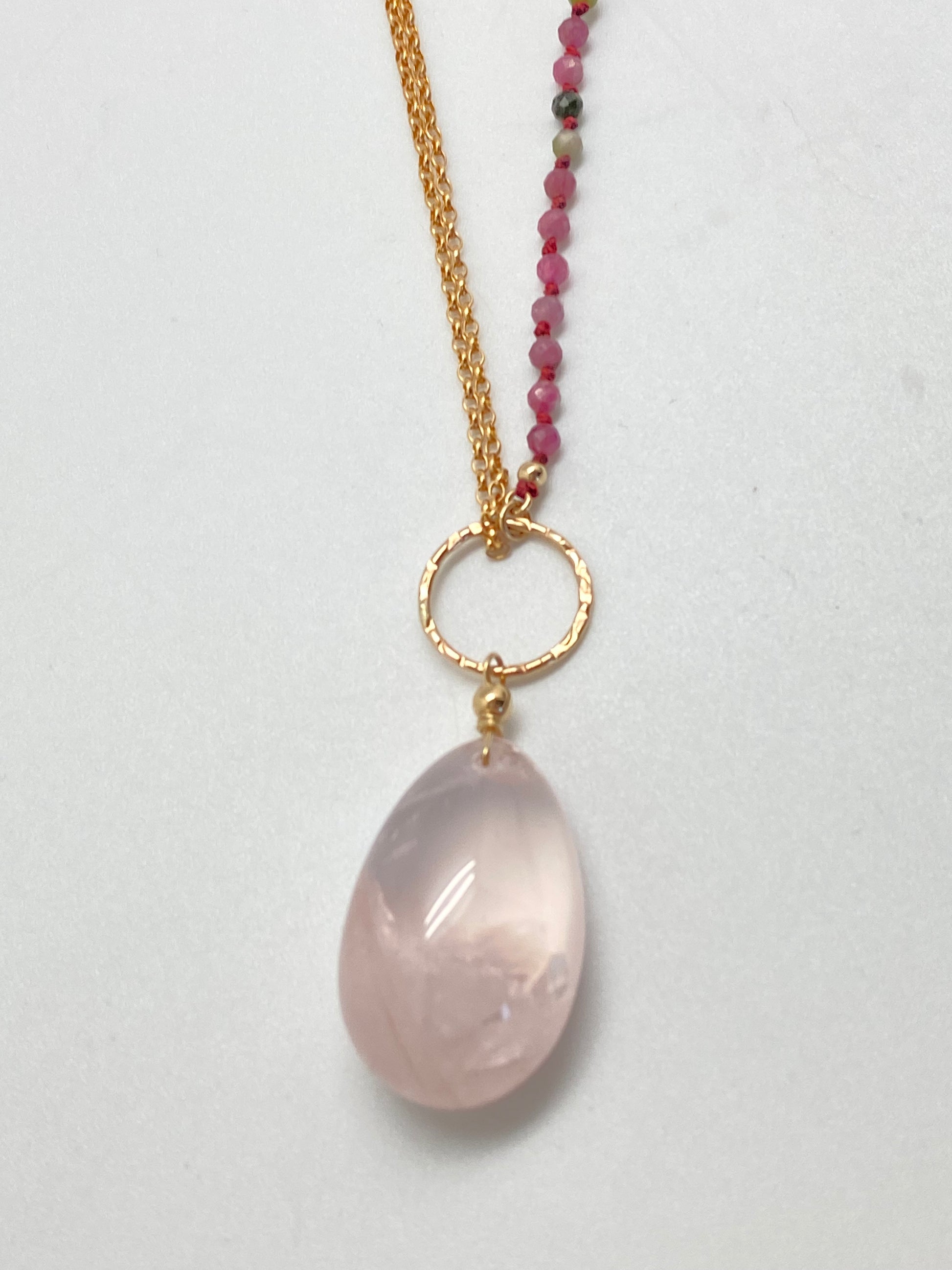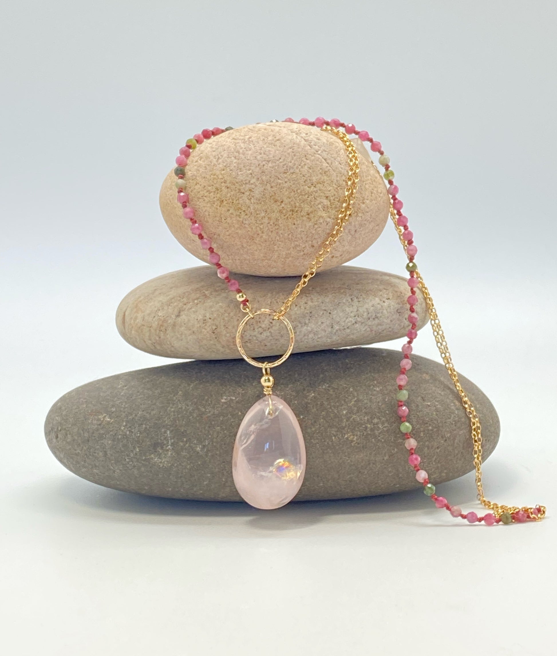 Rose Quartz Pendant with Rainbow Inclusions: Symbolizes love, strength, and courage, bringing peace to the heart.