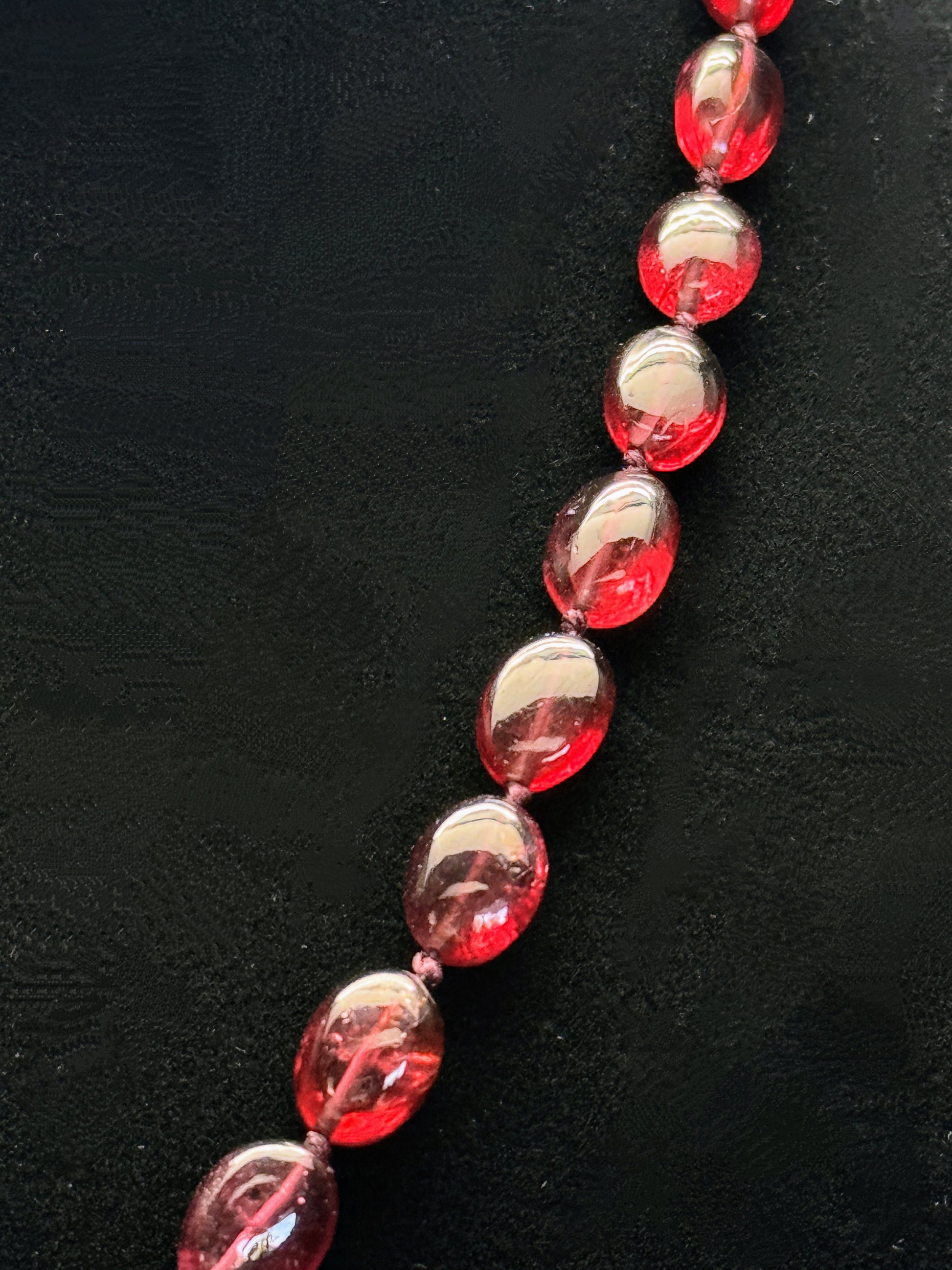 Graduated Stones: The stones’ sizes and colors gradually transition from deep purple to red, showcasing the remarkable natural variation and craftsmanship that went into their cut.
