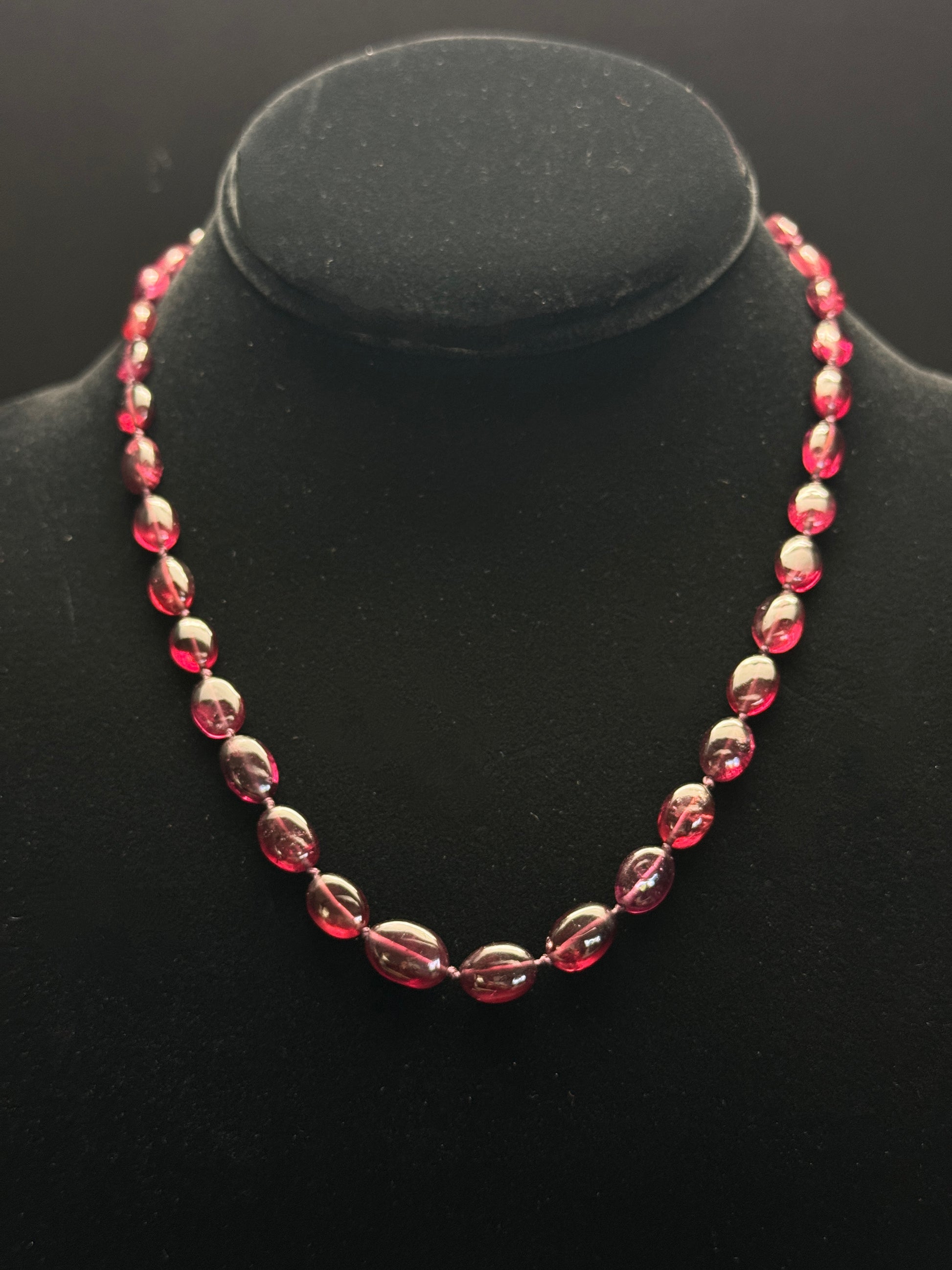 Discover the allure of this one-of-a-kind necklace, featuring graduated stones of Purple Garnet—(Rhodolite) a gemstone known for its rarity, captivating color, and powerful emotional properties. Each garnet is hand-selected for its stunning hue and cut, creating a harmonious flow of colors that will leave you mesmerized.