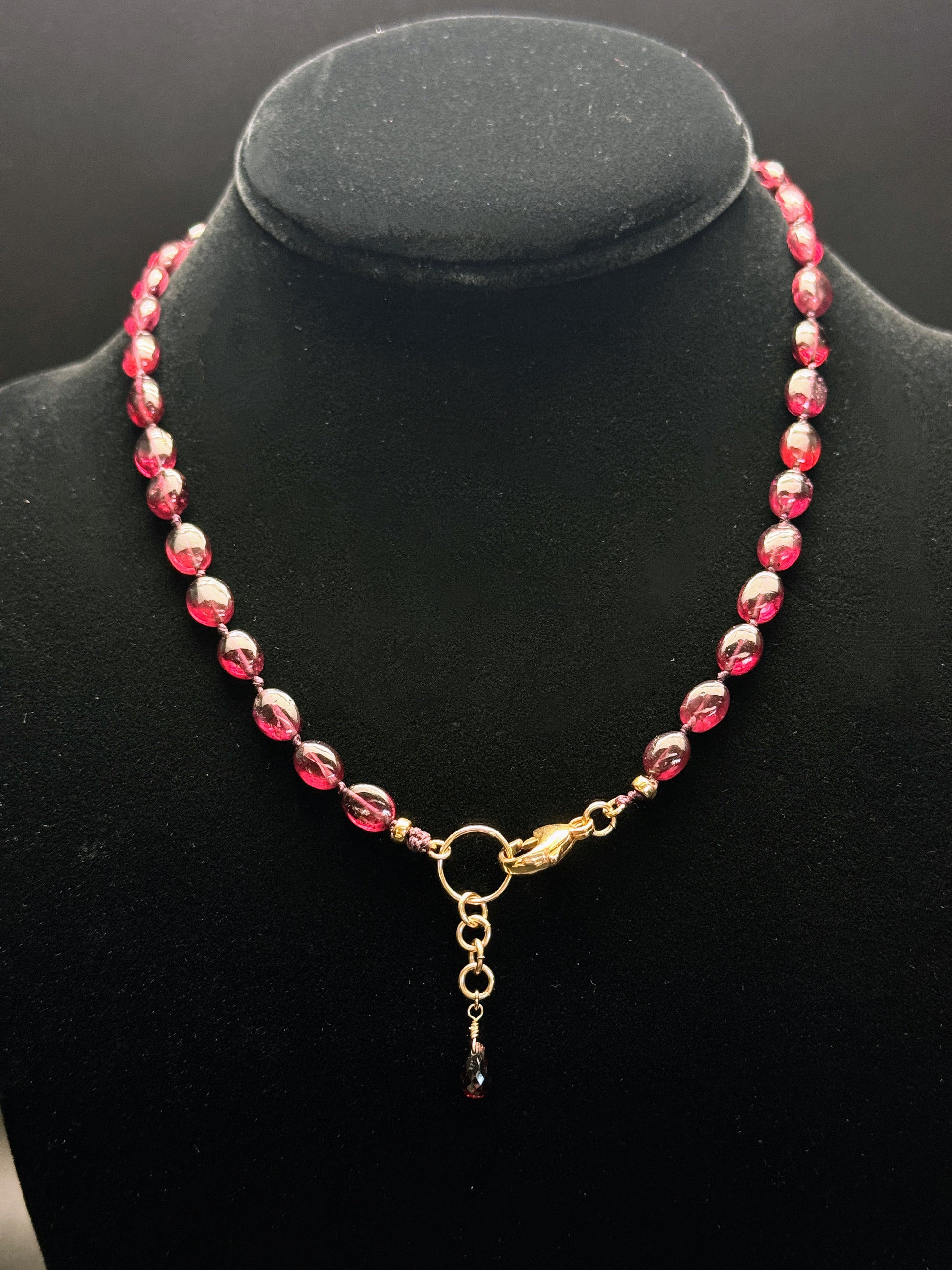 14K Gold-Filled Clasp & Ring: The necklace features a high-quality 14k gold-filled clasp and ring, offering both durability and sophistication that perfectly complements the rich hues of the garnet stones.