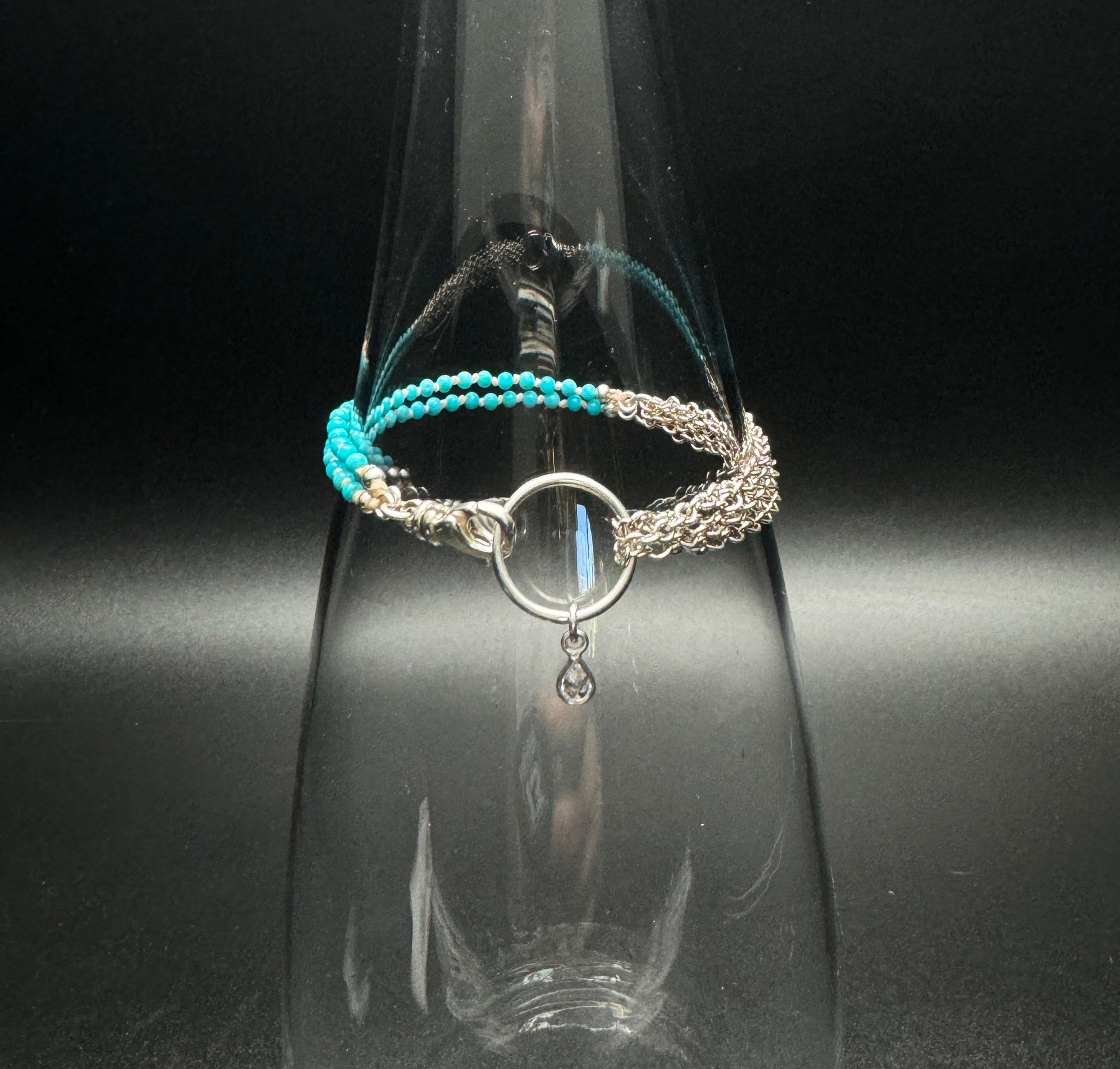 Embrace the perfect blend of beauty, symbolism, and healing energy with this handcrafted bracelet. Designed with care, each double strand of hand-beaded Sleeping Beauty turquoise is delicately joined by a sterling silver chain and silver ring, creating a piece that radiates both elegance and meaning.